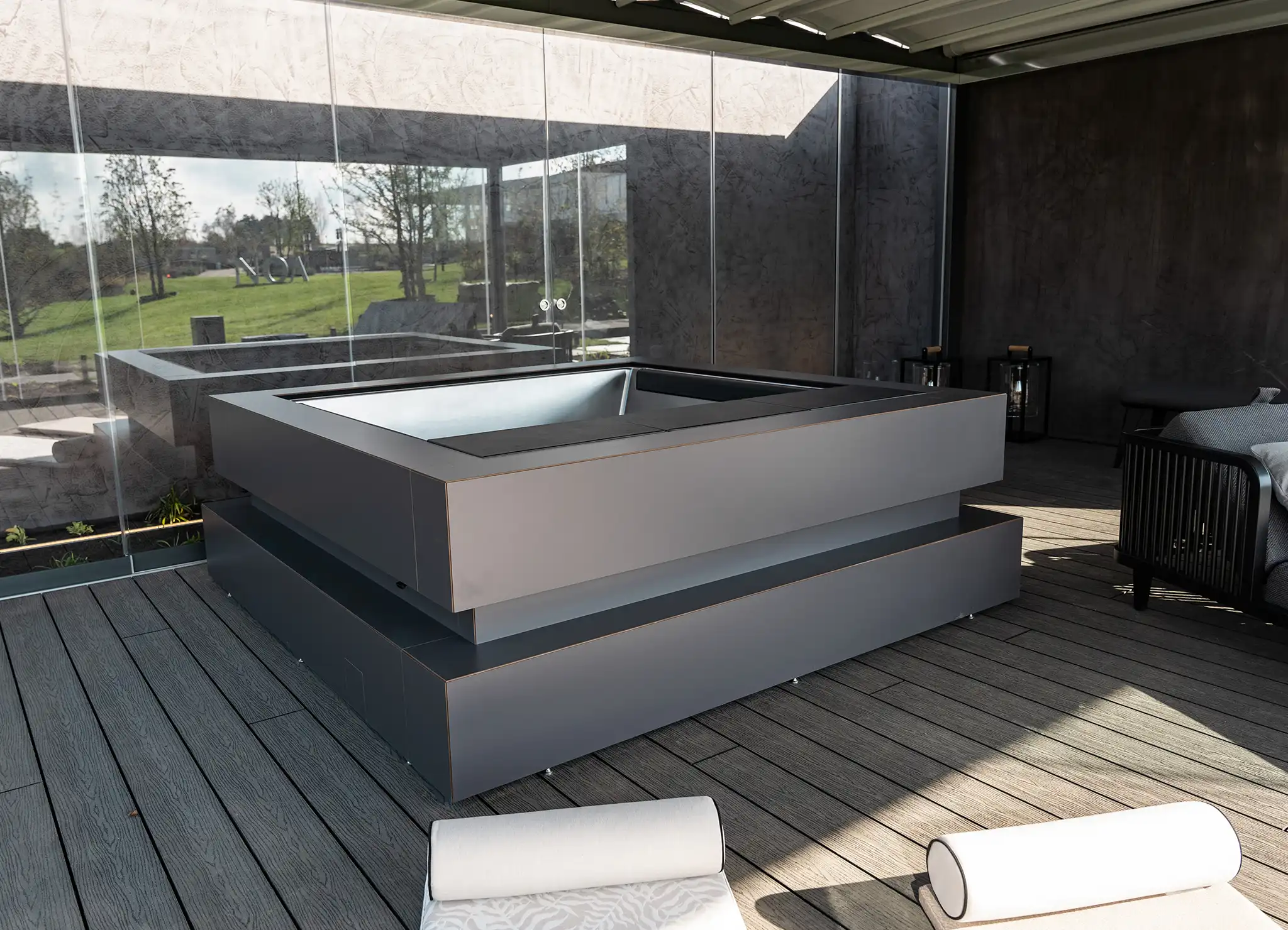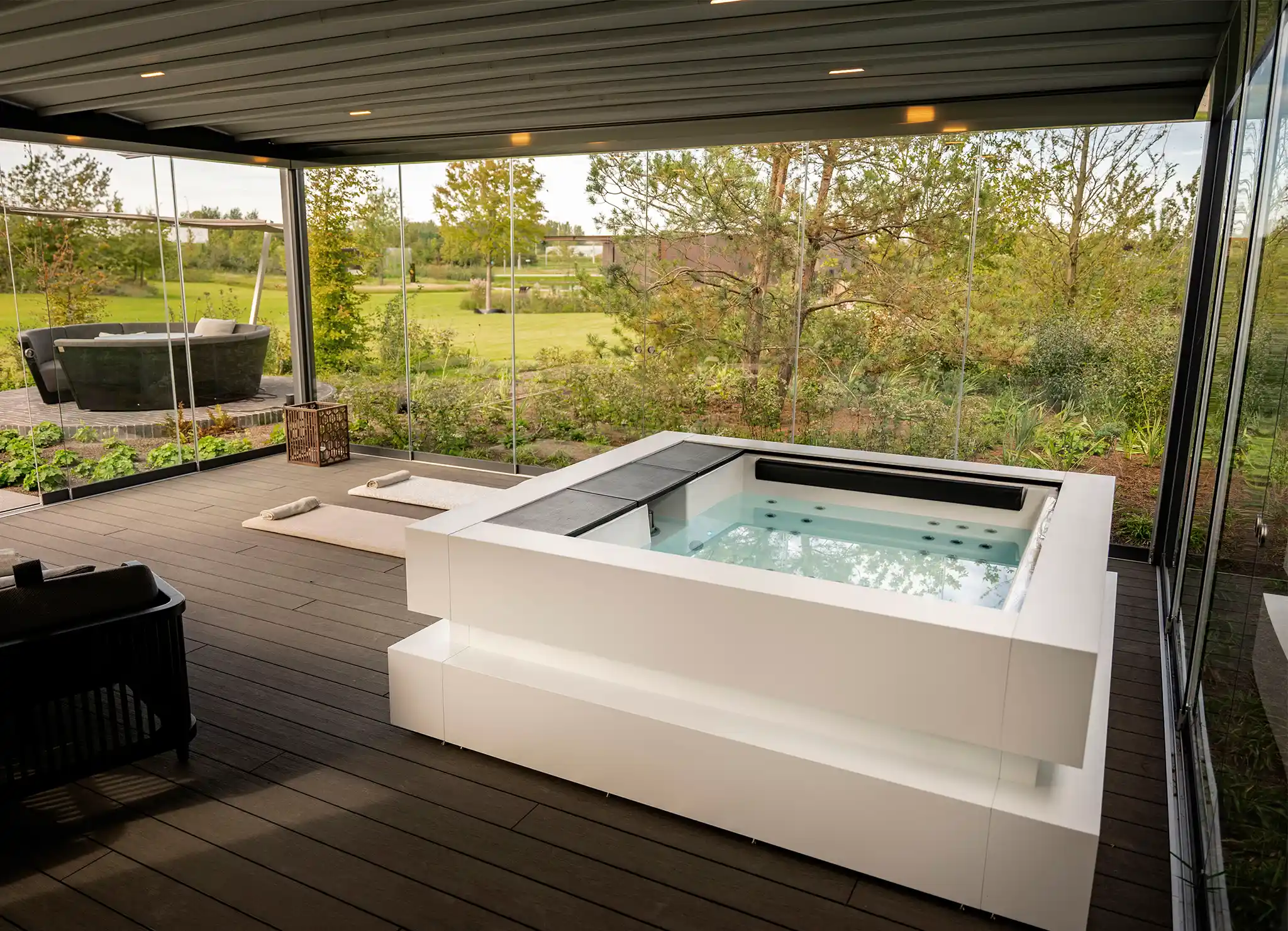 El spa de Aquavia Spa transforma Noa Outdoor Living en un oasis privado de bienestar y relajación al aire libre.