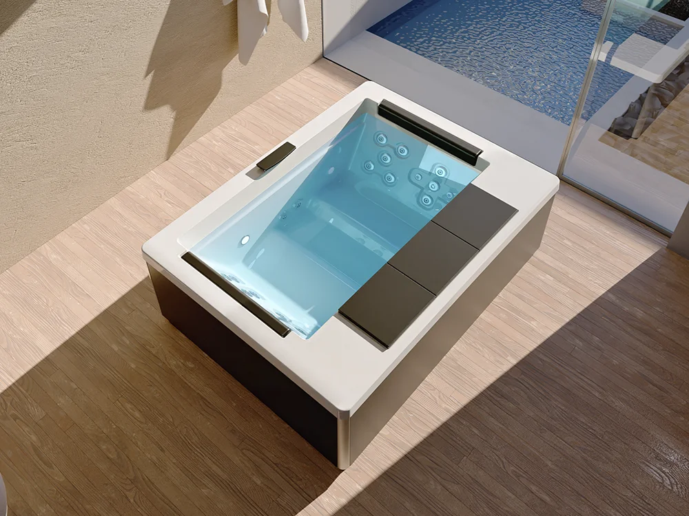 Boligarealer nyfortolket til daglig hvile: funktionel elegance, tilgængelig teknologi og en stil designet til at passe ind i det moderne hjem. Serien samler essensen af et hydromassagesystem af høj kvalitet med avancerede materialer af europæisk oprindelse og en forenklet installation til terrasser eller indendørs områder.