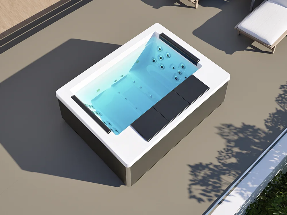 Firepersoners spabad med raffinerede linjer og et afbalanceret design. Skabt til at tilbyde urban wellness, maksimal komfort og en elegant afslapningsoplevelse.