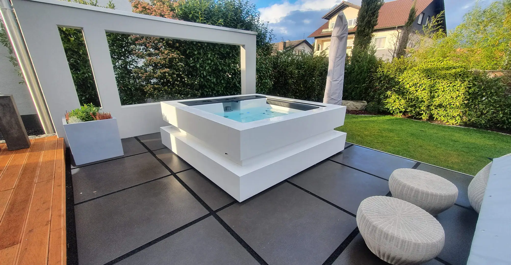 In large gardens, a jacuzzi can be seamlessly integrated and become a real eye-catcher. Whether for a private wellness oasis or as a social gathering place for family and friends, a garden hot tub offers numerous advantages.