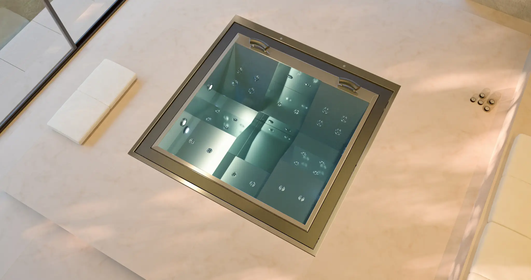 Ovaj ugrađeni jacuzzi opremljen je integriranim sustavom kromoterapije , uključujući četiri LED reflektora za stvaranje impresivne atmosfere blagostanja . Također sadrži vlasničku tehničku opremu, uključujući neovisne hidromasažne pumpe, ubrizgavanje zraka i filtraciju, što osigurava optimalne performanse i luksuzno iskustvo.