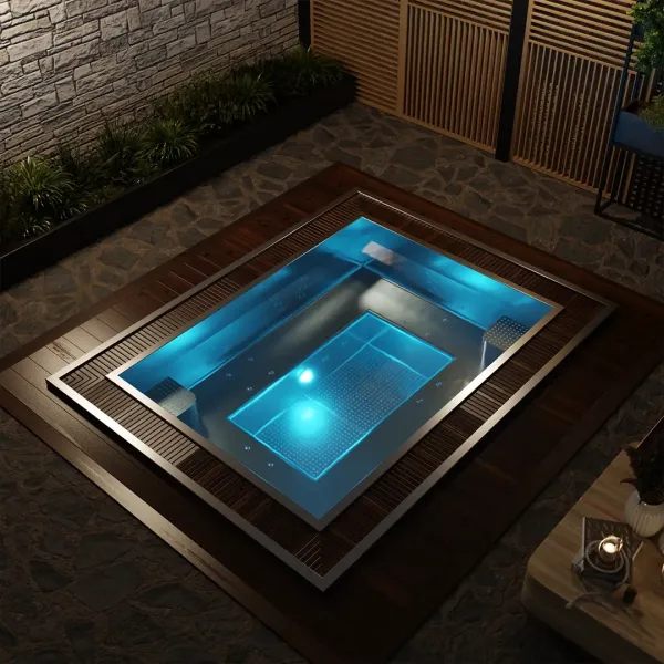 Progettate per unire un'estetica contemporanea alla massima durevolezza, le nostre vasca idromassaggio in acciaio inossidabile sono pensate per chi cerca esperienze di alta qualità senza rinunciare all'eleganza o all'efficienza. La vasca idromassaggio in acciaio inox non solo offre un elevato valore estetico, ma garantisce anche una lunga durata nel tempo, anche all'esterno, grazie alla sua resistenza alle intemperie. Scopri di più sui nostri modelli di vasche idromassaggio in acciaio inox e fai la scelta perfetta per la tua casa.