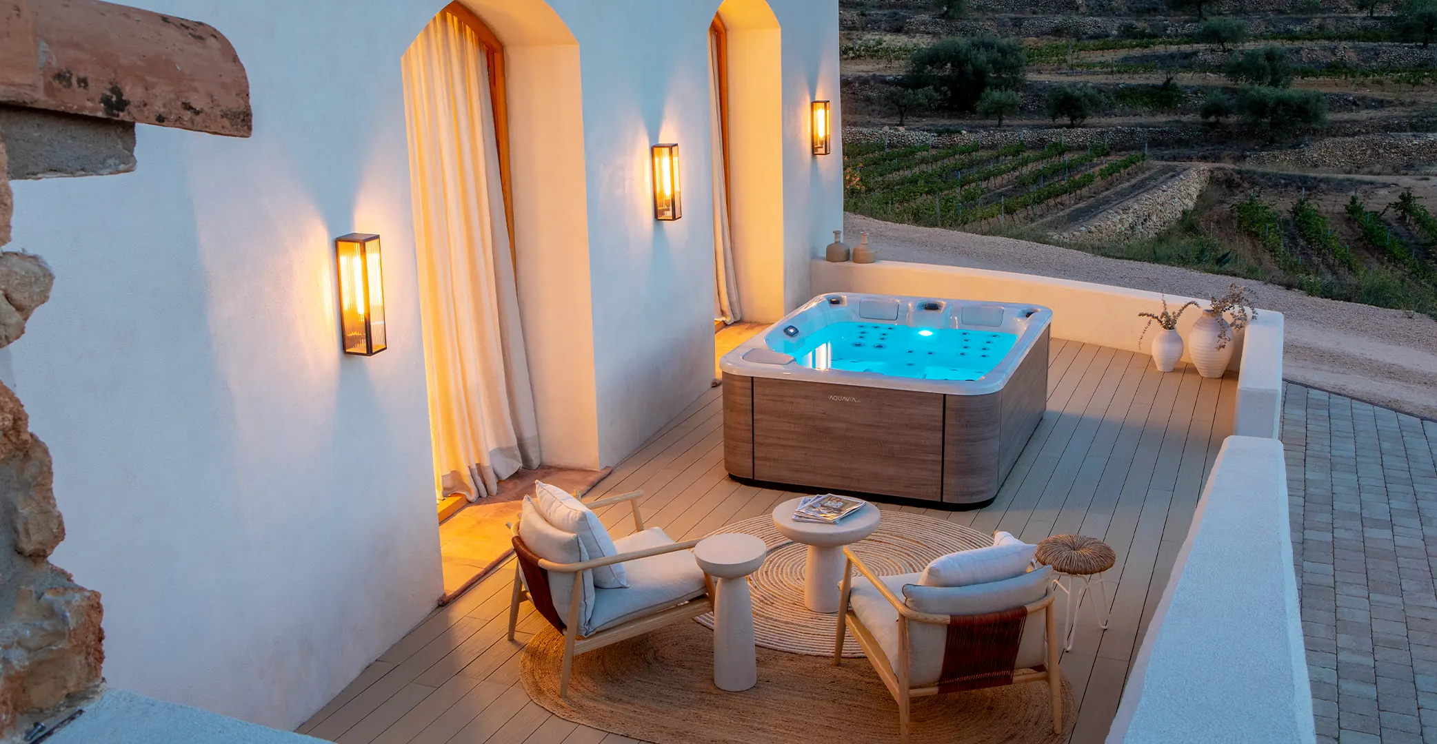 vasche idromassaggio di alta gamma di Aquavia Spa offrono modelli personalizzabili, dalle vasche idromassaggio per due persone come Spa Suite e Spa Home , a installazioni più grandi, ideali per riunioni di famiglia o con gli amici. La possibilità di personalizzare il design e le caratteristiche della vasca idromassaggio, come l'illuminazione, le opzioni di massaggio e le finiture, è uno dei motivi principali per cui i consumatori scelgono questi modelli per i loro giardini.