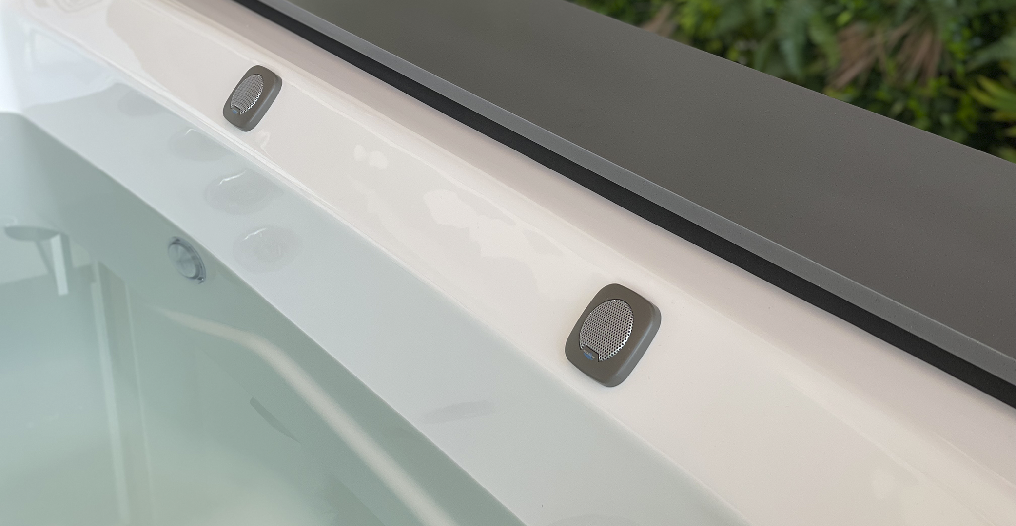 - Høyttalere integrert direkte i spa-strukturen.
