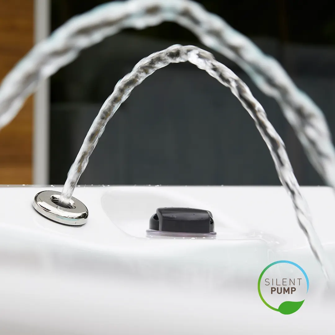 Además, Silent Pump es totalmente independiente del circuito de hidromasaje. Mientras la mayoría de spas del mercado utilizan el mismo circuito y, por tanto, no se puede filtrar el agua mientras funciona el masaje, los spas de Aquavia pueden realizar ambas funciones al mismo tiempo. Silent Pump garantiza un agua cristalina en todo momento.