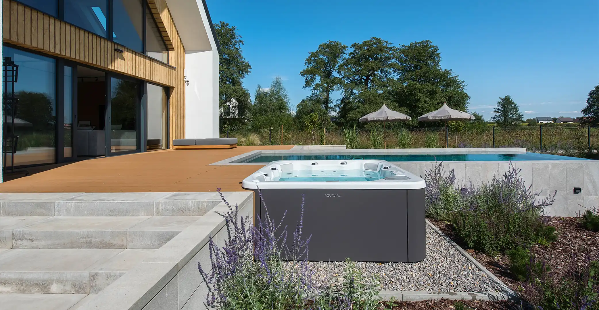 Dincolo de achiziție, o vizită la Horizon House oferă inspirație. Vedeți o spa Aquavia Integrat într-un mediu complet — cu grădină, piscină și zonă de relaxare — vă permite să vizualizați cum ar putea arăta propriul proiect.