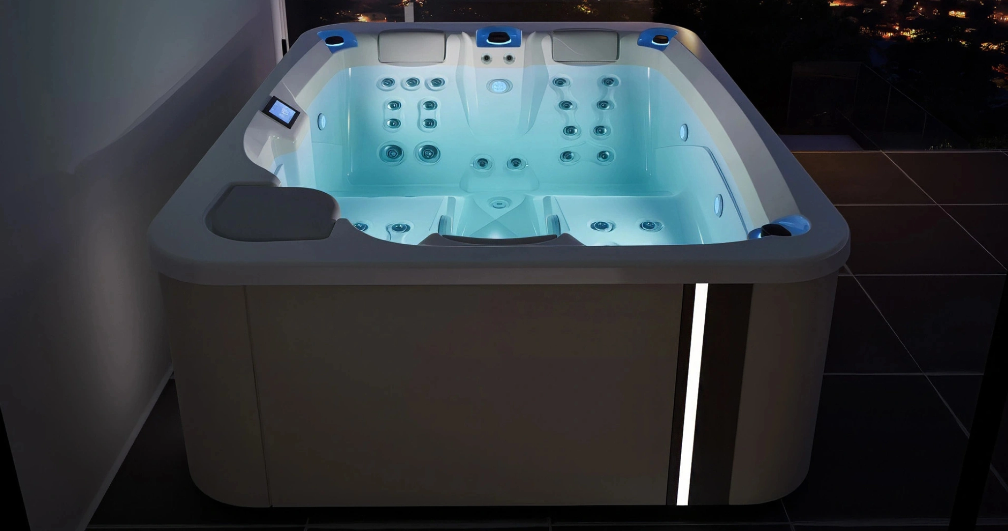 Spa Touch PRO имеет 42 форсунки и компактный размер, подходящий для любой террасы, сада или комнаты. Среди главных особенностей Touch PRO выделяется встроенная хромотерапия с 5 светодиодами и клапанами с подсветкой, которые усиливают эффект релаксации.