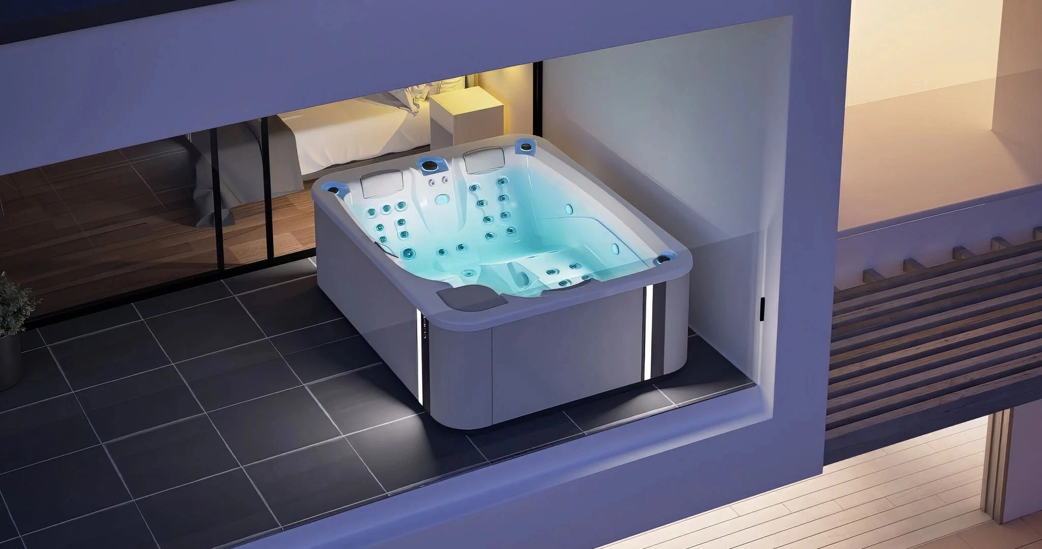Преобразите свой домашний спа с помощью нашей последней инновации: Surround Bluetooth Audio Pro. Эта усовершенствованная функция выводит ваши ощущения от посещения гидромассажной ванны на новый уровень роскоши и комфорта.