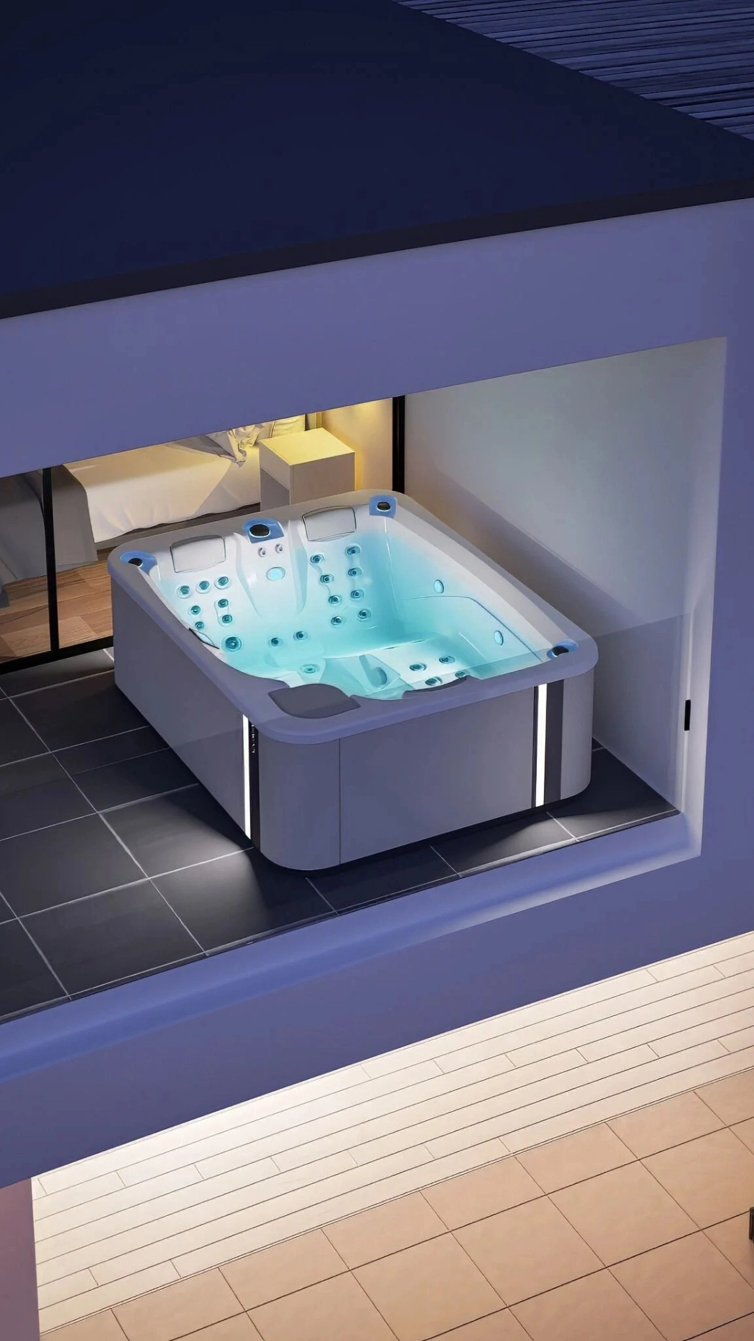 Blue Wave System предлагает инновационный вращающийся массаж в спа-салоне, создавая непрерывное ощущение мягкости и благополучия с помощью струй, которые превращают воду в крошечные пузырьки для успокаивающей и расслабляющей процедуры.