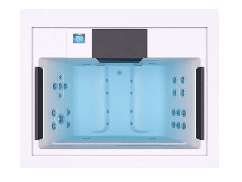 Home Spa är det mest lockande minimalistiska spaet just nu. Dess mått (215x171x75 cm) står i kontrast till dess mångsidighet, tack vare en design som möjliggör fyra olika positioner i sina två schäslongliknande fack. De 20 hydromassagejetstrålarna som utrustar detta sensationella spa masserar hela ryggen, från nackdelen till ländryggen, med olika egenskaper i varje position. Dess 8 luftstrålar frigör samtidigt de bubblor som behövs för en extraordinär massage som aktiverar blodcirkulationen från fotsulorna till skinkorna, med gynnsamma effekter för både avslappning och muskelåterhämtning. Modellen är också utrustad med fyra LED- undervattensspotlights (inklusive upp till 4 spotlights från Colour Sense - kromoterapisystemet), samt jetstrålar och munstycken i rostfritt stål som framhäver den oklanderliga designen hos detta spa. Det finns inget bättre än den perfekta storleken, och det är precis vad detta spa erbjuder. Idealiska mått säkerställer att inget utrymme går till spillo och att spaets faktiska användning inte blir överdimensionerad. När det gäller design och stil gör de helt anpassningsbara akrylfinisherna och möjligheten till beklädnad i Solid Surface-materialet Home Spa till en verkligt värdefull lösning.