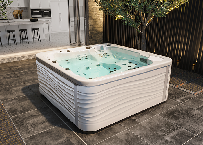 Aurora är ett innovativt, sensoriskt och hållbart erbjudande. Den här gången börjar vår upplevelse utifrån, med ett skåp som väcker alla dina sinnen. Aurora erbjuder en komplett badupplevelse från första beröringen. Dess mjuka, smidiga känsla framkallar en känsla av välbefinnande och inbjuder dig att dyka ner i vattnet direkt. För att designa detta nya skåp använde vi TripleS-teknik (säker, mjuk och stark) , övertygade om att varje komponent i våra spabad förtjänar särskild uppmärksamhet. Detta nya skåpkoncept syftar till att skapa en stil som är både skonsam och kompakt, lämplig för både inomhus- och utomhusinstallationer . Miljövänlig, vattentät, värmeisolerande, hållbar och antibakteriell... Det här är bara några av Aurora funktioner. Låt dig ryckas med och upplev detta skåp genom att väcka alla dina sinnen.
