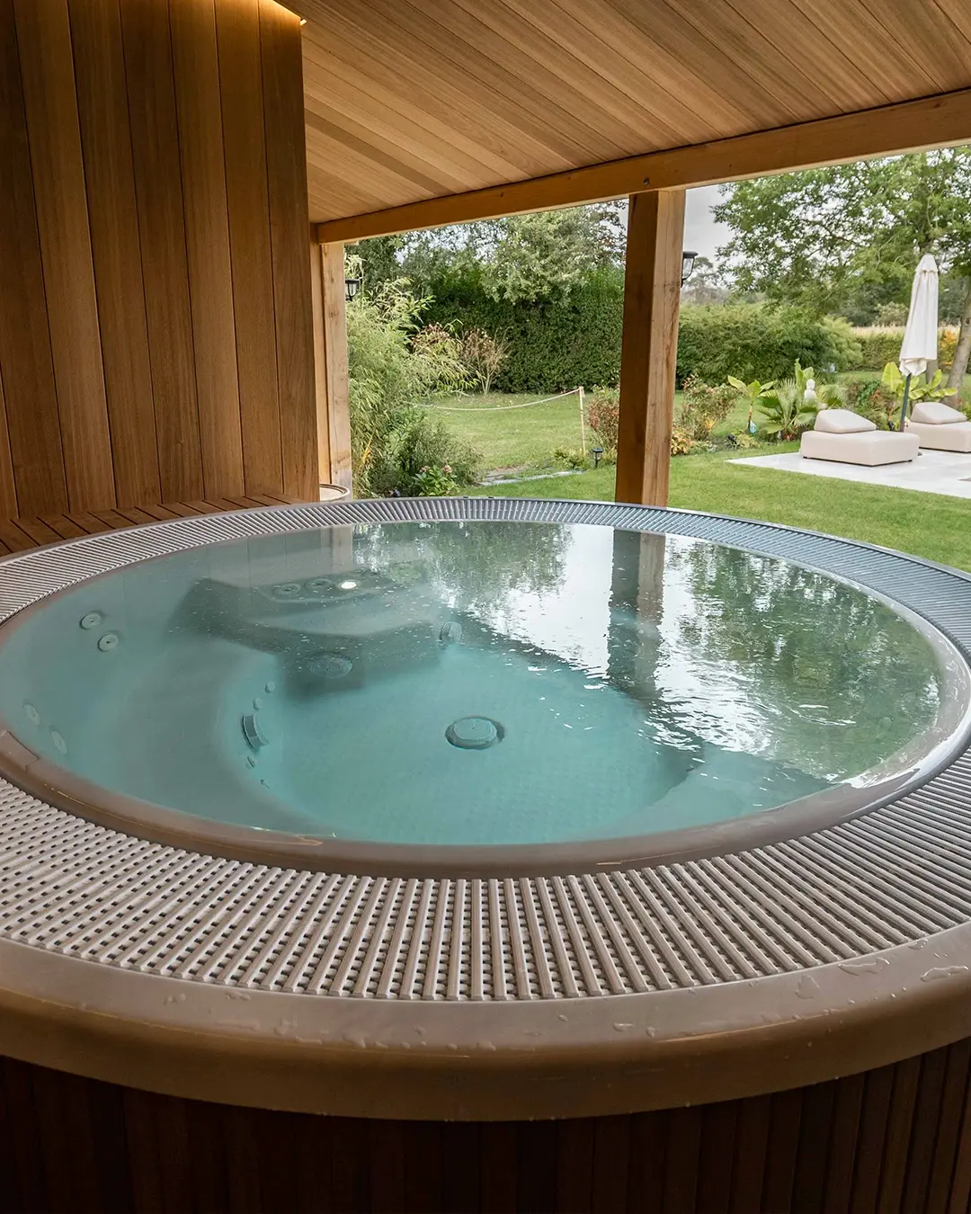 Bali Spa från Aquavia Spa är det perfekta valet för dig som vill installera en högpresterande rund bubbelpool i professionella utrymmen. Detta spa är designat för gym, wellnesscenter och lyxbostäder och kombinerar sofistikerad design med avancerad teknik, vilket garanterar en oöverträffad hydromassageupplevelse. Installationen är enkel och anpassar sig till både inomhus- och utomhusutrymmen, vilket erbjuder mångsidighet och kvalitet för alla miljöer.