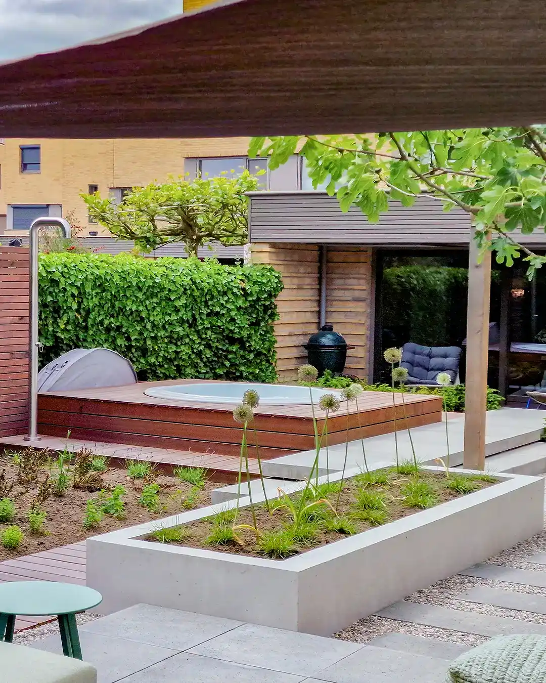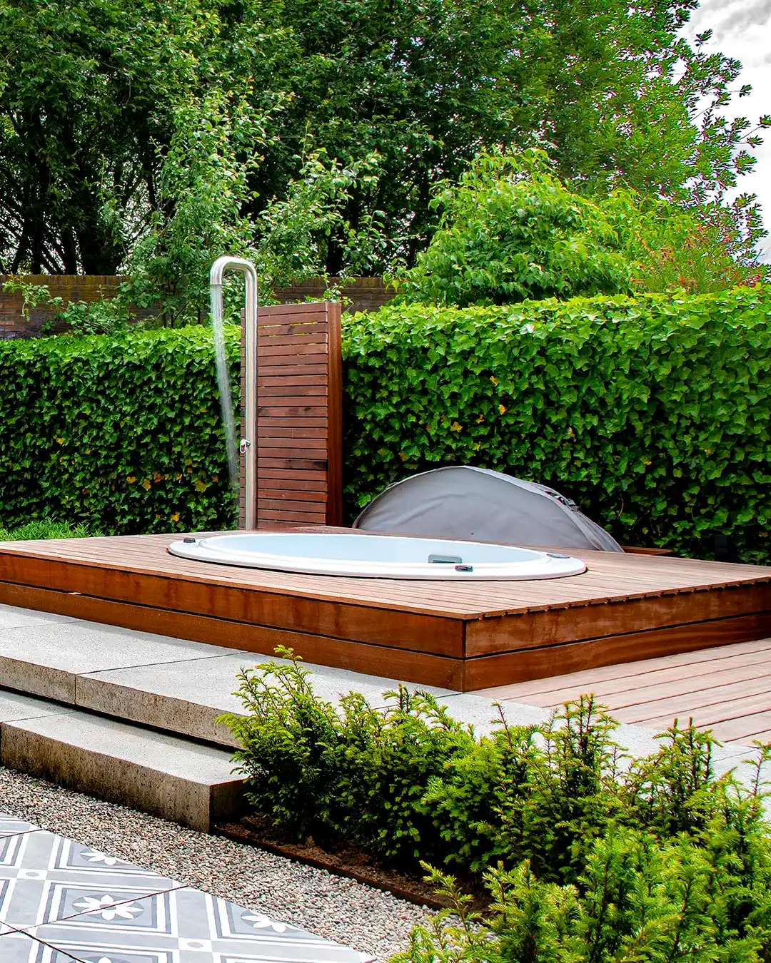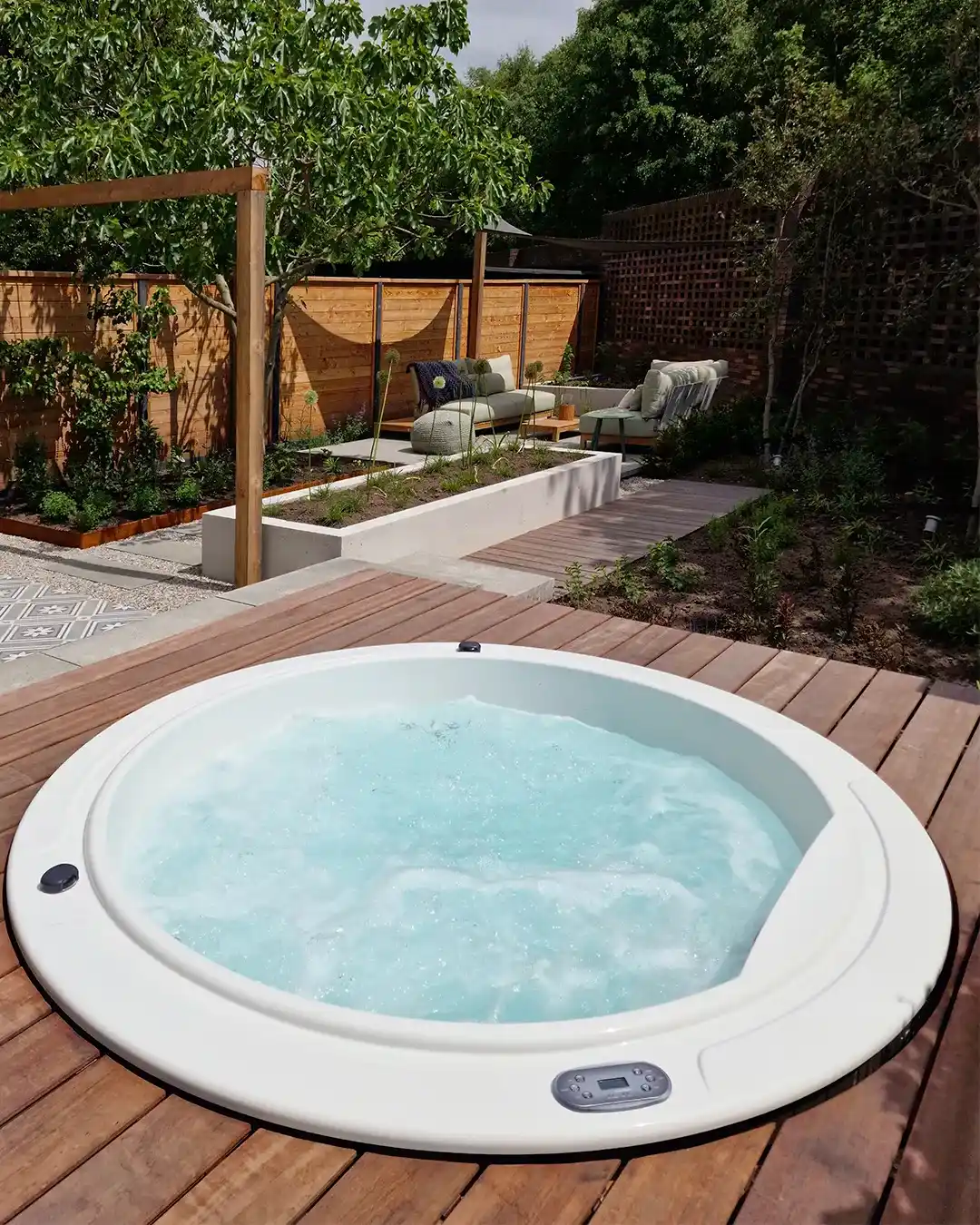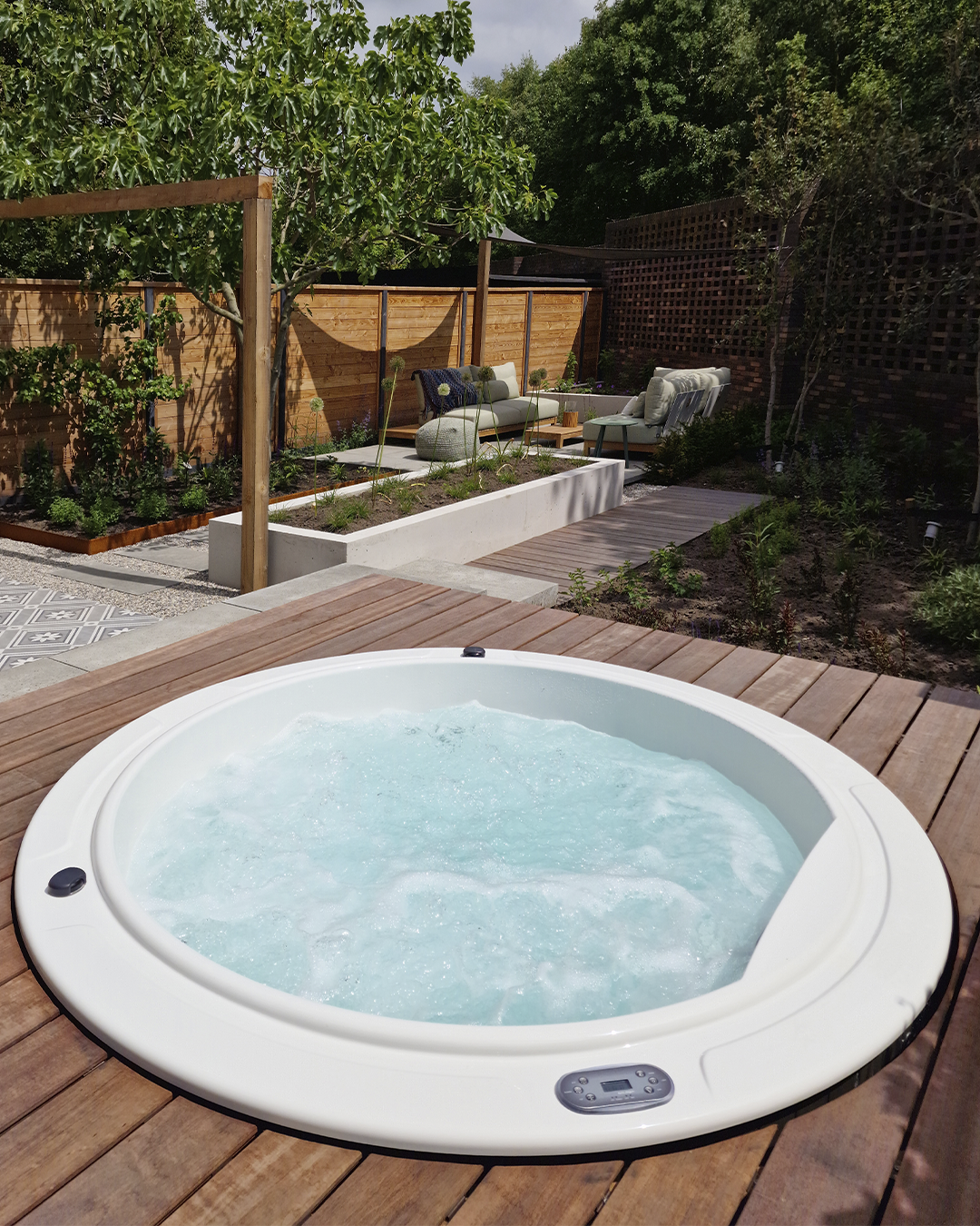 Sundown spaet utmärker sig genom sin runda form, som mäter 2,05 meter i diameter, vilket skapar en flytande och elegant estetik. Dess design anpassar sig till sofistikerade utomhusmiljöer, såsom terrasser med chill-out-områden eller öppna trädgårdar, vilket ger en touch av stil och modernitet. Kombinationen av träpaneler och en bred palett av interiörfärger möjliggör ett personligt utseende och sömlös integration i alla miljöer.