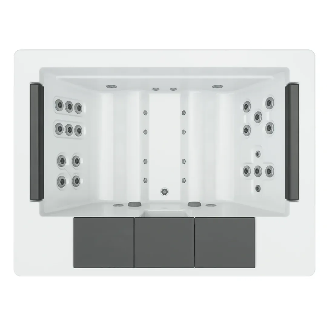 Suite utmärker sig för sin minimalistiska och eleganta design, som passar perfekt in i både privata hem och hotellsviter. Med fyra olika positioner inuti, inklusive två ergonomiska solstolar, erbjuder denna jacuzzi en ojämförlig hydroterapiupplevelse .